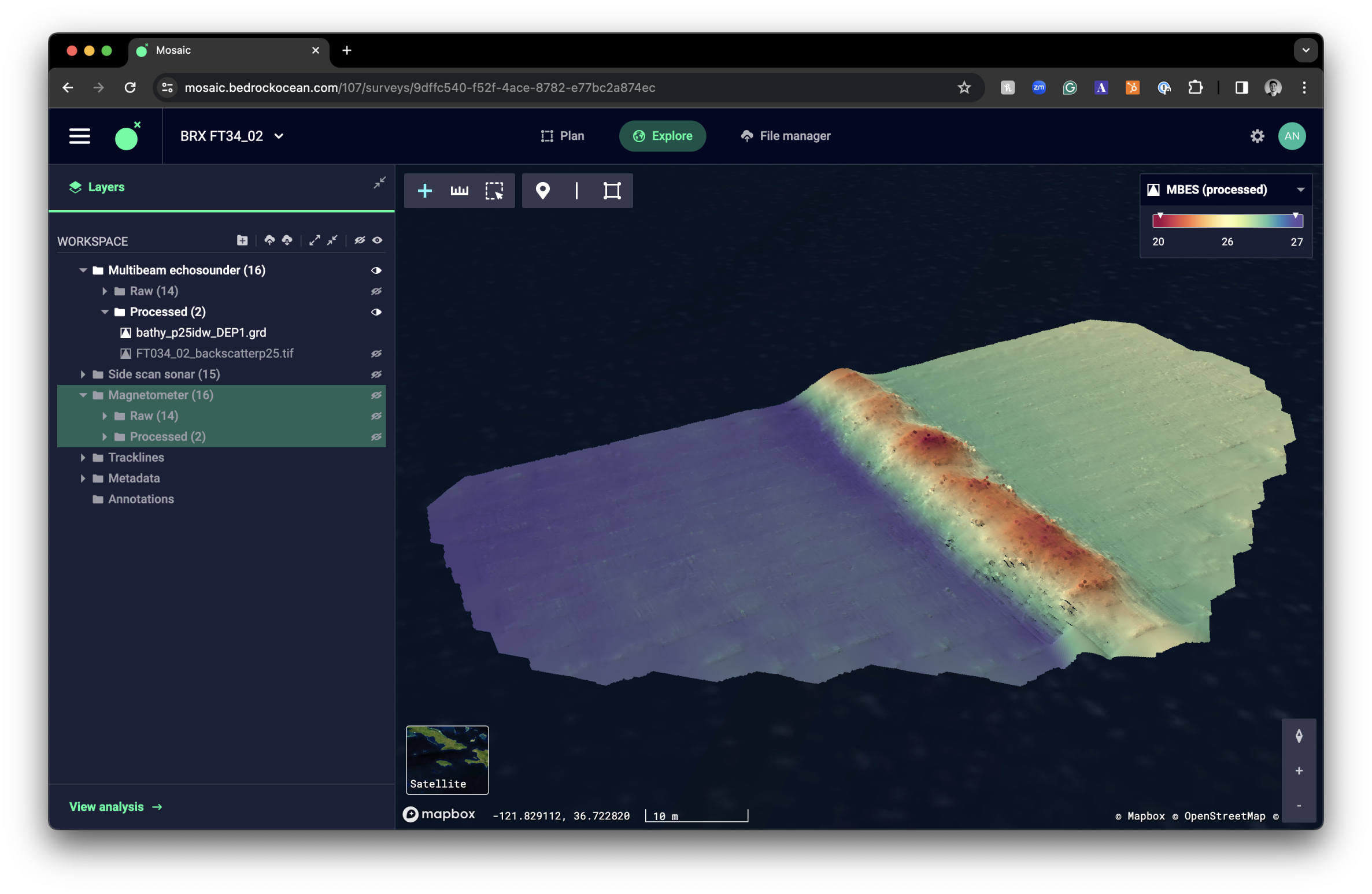Fig. 1 Processed bathymetric map of the outfall pipe in Bedrock’s mosaic platform.